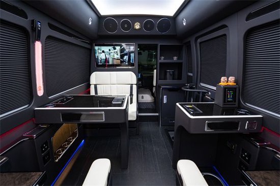在车内的装饰设计上来说。丰田考斯特改装商务车,更能体现出尊贵与豪华舒适的特点,丰田考斯特采用的是后排三座,宽敞而又舒适,豪华首长座椅以及商务办公桌,让您的旅途不会因商务的安排而疲劳。我们追求得是为您带来更多的舒适之感,我们可以为您提供高短的私人订制,您可以根据自己的需求定制专属您的舒适座驾。