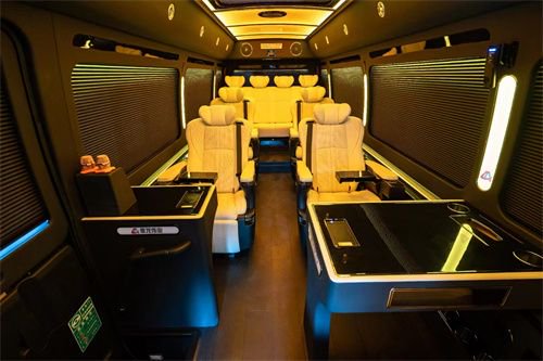 丰田考斯特12座改装商务车,除了座椅的改装以外,车内隔断的增加也是别有一番风味的,隔断的增加,将驾驶席和乘客席分开而设,同时我们可以在隔断上增加一些精美的装置,电子时钟,或者显示屏,方便有使用。隔断的效果最主要还是分离了司机和乘客,既能够给司机一个安静的驾驶环境,同样也为乘驾人员提供了更加静谧的乘车空间。