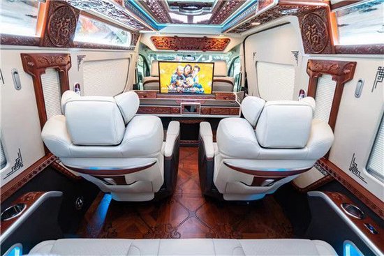 丰田海狮商务车改装房车空间很足够,毫无短促感,真皮包覆的车舱,丰田海狮商务车改装超大屏导航,显得很上档次。前置精巧吧台,奢华桃木装饰。下方两个独立的电动隐藏式真皮座椅,吧台上方是升降液晶电视,及BOSE音响。座椅悉数选用纳帕真皮制作,(北京东方众威原创)丰田海狮商务车改装房车做工精巧,合缝处理紧密,展现德国造车的谨慎和高标准要求。座椅还配备了电动按摩加热通风系统。(北京东方众威原创)后排座椅侧还有电动隐藏式作业桌板,丰田海狮商务车改装房车商务作业很便利。