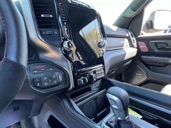23款道奇霸王龙在内饰部分进一步强化了其高性能版本的形象,中控台和座椅随处可见的TRX标识便是最好的例证。同时,作为道奇家族的旗舰车型,新车还配备了12英寸竖置中控屏幕,除了支持蓝牙、导航和车载Wi-Fi等常见功能,还支持AppleCarPlay和Android Auto手机映射。
