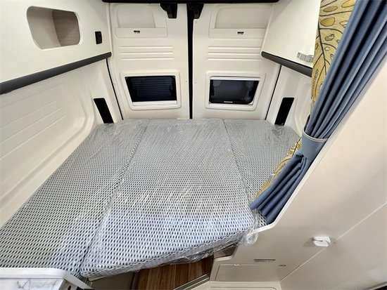 尾部是横置床的布局,尺寸为1850X1200mm,可睡下两个身材匀称的成人。床铺旁边还有储物空间、顶置天窗等实用性功能设施。打开尾门之后可以看到卧室为横置床铺布局,下方最让人惊喜的就是容量超级大的储物仓,并且不管是在尾门还是车内都可以轻松整理和拿取物品。