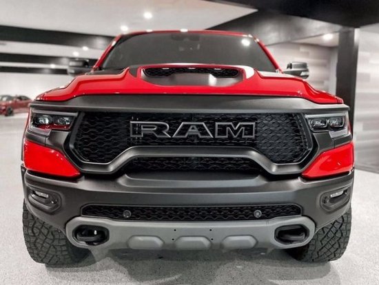 2023款道奇霸王龙传承了道奇Ram家族高大威猛的造型设计,同时细节部分融入了更多高性能元素,包括经过黑化处理的前格栅,引擎盖两侧的黑色进气口,以及为了容纳巨大的机械增压器而设计的通风口,前倾式车头,相较中规中矩的家族设计无疑多了几分对路面的侵袭感。眼神中没有透露出一丝的活泼神韵,唯一展现出来的只有凶狠。