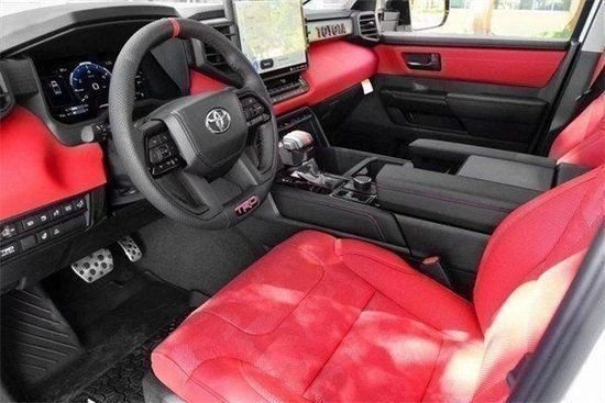 2023款丰田坦途TRD越野版采用悬浮式中控大屏设计,中控屏从低配版8英寸到顶配版的14英寸,并且还提供有12.3英寸的全液晶仪表盘可供选择,支持CarPlay和Android Auto系统。值得一提的是,新车全系标配Toyota Safety Sense 2.5智行安全系统,具备拖挂模式、蠕行模式、越野模式等多种驾驶模式。