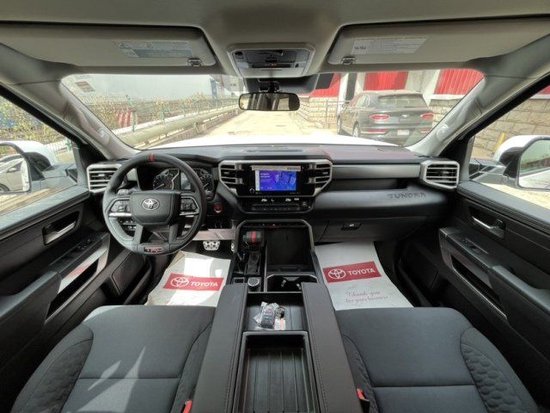 23款丰田坦途的内饰设计也采用了新设计风格,“硬”还是第一感受。无论是平直的线条还是灰白的用料配色,车内的风格都是非常偏向于越野,宽大的悬浮式液晶中控屏幕也是挺抢眼的,根据不同配置也将提供有8英寸以及14英寸的不同配置,就是这个感觉还是很像“大彩电”,只是放在这台车上会显得更协调一些,功能上也丰富了在线车联网以及CarPlay车机互联功能。