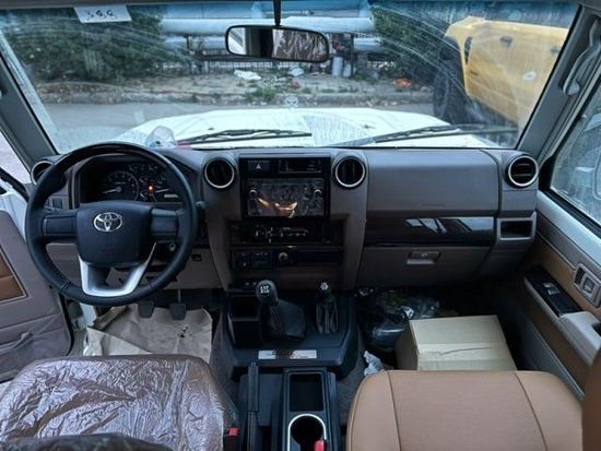 23款丰田酷路泽LC76整体布局与老款车型设计风格相似,中控台按键不多,操作简单,同时为方便驾驶者员操作,均被安排在中控台左侧,光秃秃的四幅方向盘,与传统的手柄式手刹,这一切只为简单可靠,光秃秃的方向盘,没有豪华SUV那么多按键,没有定速巡航,一切只为简单可靠。