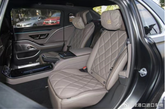 迈巴赫S680座椅部分,车内采用4座布局,并且车内座椅均采用了Nappa真皮材质进行包裹。座椅的功能性方面,新车标配了前排及第二排座椅电动调节、加热、通风、记忆、按摩等功能。此外,后排还配备了隐藏式折叠小桌板、头枕多媒体屏、车载冰箱等配置。除此之外,新车还提供多种内饰定制化服务,并在多处展示了“MANUFAKTUR”标识。座椅头枕与高绒地垫上也加入了使用金色丝线制成的迈巴赫Logo。