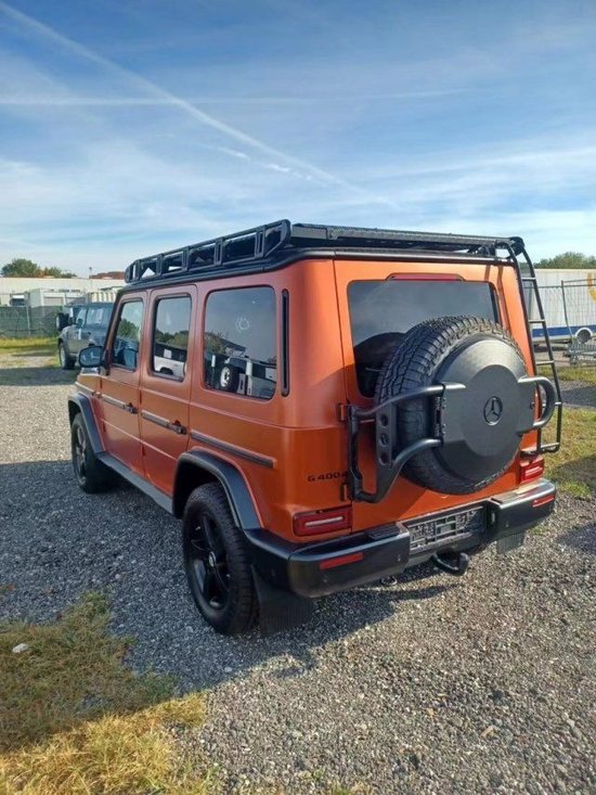 奔驰柴油版G400d车尾仍然采用了后背的备胎设计,但不再布置在尾箱门上,而是通过支架布置在车体上。奔驰G (配置|询价)400d也有着足以征服各种路况的本领。而这些正是奔驰G诞生的最初目的。贵宾购车电话:13388063216 成经理 (微信同电话)平实的表面和简约的直线赋予了G级车独特的风格,这是建筑设计的包豪斯流派所倡导的“功能决定形式”的设计典范。奔驰G400d 23款 柴油欧版现车|曜石黑/黑|手续全15天内发