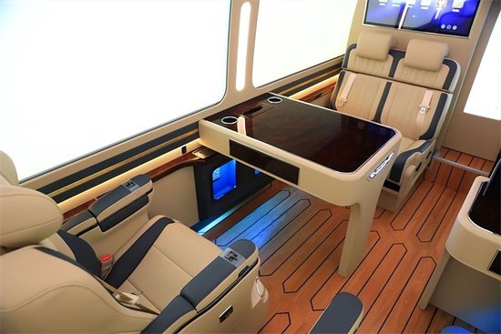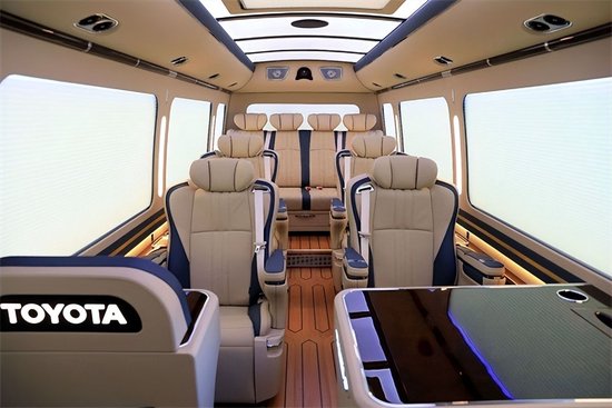 丰田考斯特12座改装商用车在座椅设计上更注重舒适性和昂贵追求,360 可旋转的航空座椅,配备高档办公桌,方便我们的办公和娱乐活动。华通丰业丰田考斯特改装商用车也可以使用完全进口的埃尔法 (配置|询价)座椅,配备通风暖气和电动脚底支撑等设备。为我们的旅行提供一个舒适的环境,减轻旅途中的疲劳。