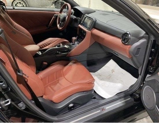 2023款日产GT-R内饰部分,新车整体设计没有太多改变,依旧是传统的指针式仪表盘搭配三辐式多功能方向盘,中控中央配备了一个内嵌式的多媒体显示屏,中央通道区域还配有物理按键以及机械式的换挡机构。此外,官方还对乘坐舒适性进行了优化,降低了车内噪音和振动。