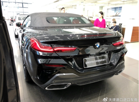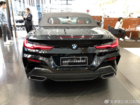 前后包围、后视镜壳、侧裙板均采用了碳纤维材质装饰。宝马8系细长的全LED尾灯与前大灯相呼应,并线伸至两侧翼子板处,上翘尾翼、双出排气及车身空气扰流组件设计……处处都十分“战斗”。新车还配备了宽大的车身底部保险杠和扩散器,还采用了熏黑碳纤维装饰。两侧为双出风口,四边形的大排气也让车尾更具运动感。