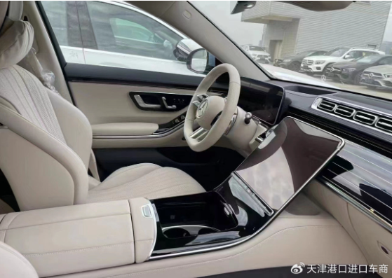 23款奔驰S450L 4MATIC内饰方面:车厢内部,彻底放弃仪表盘与中控屏的连体布局,而是将中控屏与扶手台连为一体,看起来似乎没有之前那样大气,但是坐在车厢里实际体验,却发现这样的布局非常便于触屏操作,从人体工程学角度看要更加合理。由于电气化集成程度高,车厢也基本取消了实体按键,看起来干净整洁。在用料上,依然保留了应有的奢华感,中控台采用了实木面板,车内包覆的真皮质感也相当细腻,新车在氛围灯、空调出风口等细节上也有新的玩法,中控台上方醒目的四出矩形出风口采用三级电控调节(如红框所示),不仅有新鲜感也显得高档很多。前排座椅采用真皮包裹,搭配丰富竖线纹路看上去舒展流畅,坐垫和靠背的包裹性良好,承托性和舒适性都很高。功能上,主副驾驶座椅均支持前后、靠背、腿托、高低(4向)和腰部(4向)电动调节和记忆功能,还配备有座椅加热功能。