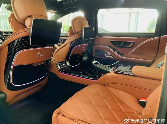 2023款奔驰迈巴赫S680配备了头等舱级后排独立座椅、带V12标志的天鹅绒脚垫、后排电话装置、后排折叠桌、冷藏箱、互联网功能、分屏显示系统、电视信号接收器、触摸板和Burmester(柏林之声)顶级3D环绕立体声音响系统。