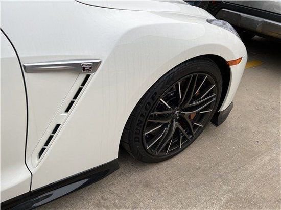 23款日产GTR前脸上方进气格栅进行了升级,由原先的梯形改为U型,下方的进气口有原先的梯形改为长方形,雾灯下方增加了进气口,并且采用了全新的前唇,新款侧面增加了侧裙,新款车型轮毂也进行了改革减少了幅数,尾部增加了全新的后包围,运动感倍增。