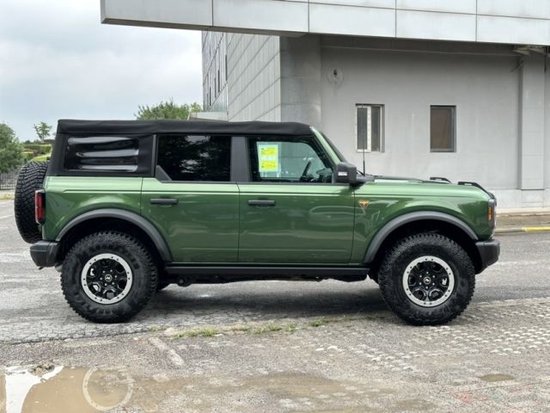 23款加版Bronco 烈马2.7T Badlands荒地版 狂热绿外黑内配置:软顶可敞篷,豪华包,大脚野人包 ,四门储物袋,全车橡胶脚垫。豪华包(自适应巡航,BO音响,10扬声器,避让转向辅助,加热方向盘,双智能充电USB接口,车库门开启,无线充电,12寸大屏,发动机舱额外隔音,360环影,前雷达,LED转向灯和地射灯,双门智能门锁,两区空调,脚部氛围灯,内后视镜自动防眩目,加热前排座椅,主副驾遮阳板化妆镜带照明,交流电插座,遥控启动,后雷达,SYNC4增强语音识别,福特Co-Pilot36O™M技术(盲点监测,车道保持,自动远光灯,倒车影像带辅助线,碰撞预警紧急制动系统AEB))