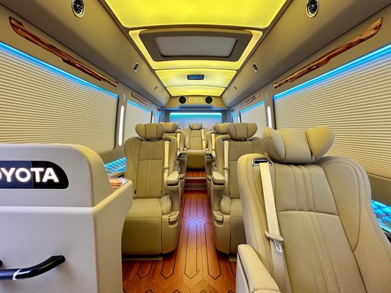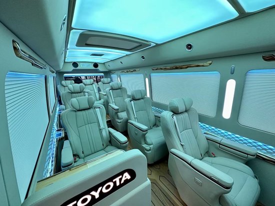 作为一款私人订制车辆,车内的配置布局以及颜色都是可以选择的,这款车型就用的是米白色,非常清爽电动一款配色。整车都是做了很好的软工包覆,座椅,侧墙,顶部,车内尽显质感,作为一款高端的接待出行用车,这款车有点料。