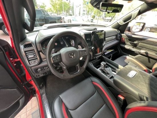 公羊1500 23款 6.2 TRX霸王龙 2级包 喷砂版包内饰采用了家族式设计,整体看上去也非常硬气具有强烈的美式风格,搭配多功能方向盘和大尺寸液晶竖屏并且做工精细。无论是外观还是内饰设计得都非常成功,强悍的外观搭载强劲的动力可以说是当之无愧的越野王者车型。
