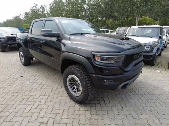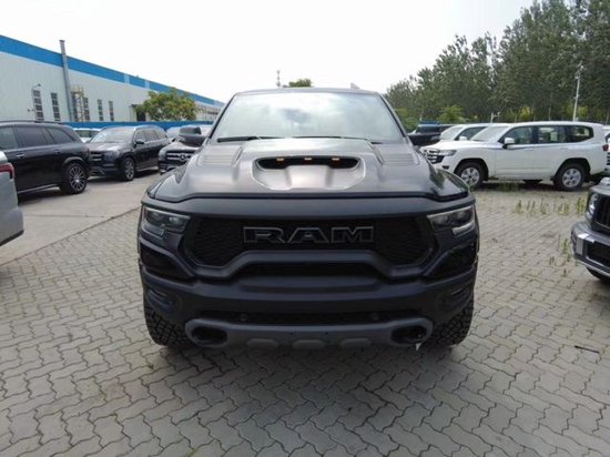 23款平行进口道奇霸王龙继承了Ram家族高大威猛的造型设计,同时细节部分融入了更多高性能元素,包括经过黑化处理的前格栅,引擎盖两侧的黑色进气口,以及为了容纳巨大的机械增压器而设计的通风口等等。此外,新车还配备了视觉冲击力更强的黑色轮眉和外露式的拖车钩,看上去十分霸气 。