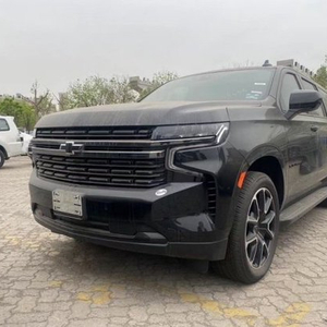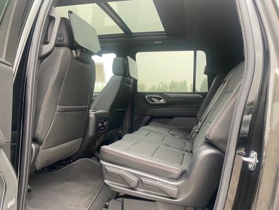 22款雪佛兰萨博班外观造型设计还是以方正风格为主,车头横纹镀铬进气格栅气场不输凯迪拉克凯雷德 ,两侧更狭长的LED矩阵大灯光源很犀利,搭配小獠牙日行灯装饰,车头侵略感比较强。车身侧面属于很明显的全尺寸SUV身材,新一代产品比老款车型轴距增加了105mm,C柱后方超大面积侧窗与凯雷德如出一辙,搭配隔音隐私玻璃和平坦的车顶行李架,沉稳的气场很突出。