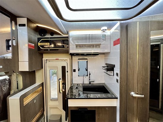整体车身尺寸为5990*2530*3195mm,(_详情垂询:l33-2195-6679_)采用了五层断桥结构,铝制骨架+PVC龙骨厢体,墙体厚度48-68mm,使其更加坚固耐用,同时拥有更好的保温性。车外一体式厨房更是全新的集成化设计,包括电动遮阳棚、柴油灶、洗菜池、置物板、取水/电口,让您在户外也能轻松烹饪,享受无与伦比的方便和舒适。