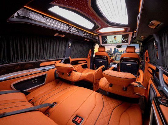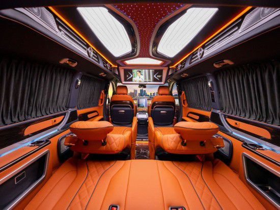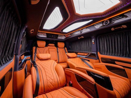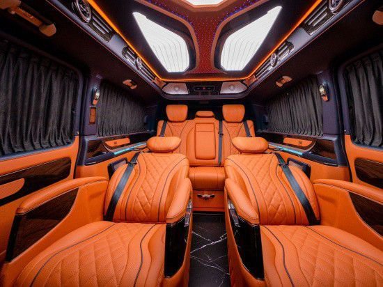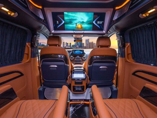全新奔驰威霆车内全部采用真皮制作,豪华木饰装点,米色与灰色的搭配,整车内饰华贵精美,顶部全车的金色氛围灯与后半部光纤的顶灯搭配,豪华氛围立竿见影,顶部全部麂皮绒包覆,用料可谓下足了成本奔驰威霆商务车,豪华与舒适兼得,尊享精品座驾;奔驰威霆改装高顶迈巴赫VS680商务7座版,完美与尊贵的象征。采用了2.0T的涡轮增压发动机,最大功率211马力,最大扭矩为350N·m。奔驰威霆豪华商务车,外观大气稳重,内饰高调奢华,时尚且不缺乏优雅,如此座驾,能够与您匹配,岂不乐哉?