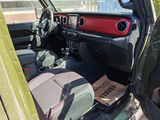 配置:标配:四驱,2.0T,8速,一键启动,红色拖钩(前2+后1),电动加热外后视镜,全尺寸备胎,17寸雪花,轮胎285/70/17,高位轮眉,原车1.5寸升高,黑色硬顶,主驾驶手动8向调节,带锁杂物箱,真皮多功能方向盘,松下8.4寸大屏,UCONNECT 第四代车机系统,越野APP,苹果和安卓手机连接,无钥匙进入,杯垫照明,8扬声器,4个USB接口,前后脚垫,倒车影像,电动车窗,电动门锁,安全警报,自动大灯,后排座椅60/40可折叠,自动空调,4.1后桥比,Rock-Trac双速机械分动箱,Red trail徽章,Rubicon贴