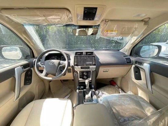 配置:中东版-2023款霸道4000 VX 最顶配版(KDSS 雷达测距 JBL音响) 亮点配置: 雷达测距(ACC自动巡航功能)、360环车影像、19轮、天窗、JBL音响、并道辅助、遥控启动、液晶仪表(行车电脑)、通风座椅、MTS(五种越野模式)、低速蠕动系统+双差速锁、四驱空调、三排电动调节、电动方向盘调节 KDSS动态悬挂系统。 基本配置:型号: LAND CRUISER PRADO 4000 ,产品尺寸 :4930X1885X1880mm 轴距 mm: 2790 ,轮距 mm 油箱容量Ltrs。: 150 ,排量cc :3956cc 功率马力 :271HP/202KW ,转矩 9气囊 、外挂 、天窗 、19高光泽铝合金铝轮、雷达测距、前2后4雷达 、大屏 、倒影、车道偏离预警、真皮座椅、主副驾座椅电动调节、主副驾座椅通风 、自适应LED大灯 、定速巡航、冰箱 、四区空调 、大灯清洗 、LED雾灯、电动后视镜 、多功能方向盘 、9寸屏 、智能卡 、150L油箱、高低速四驱转换、上坡辅助系统、二档起步功能、桃木内饰、行李架、高级锻造铝合金踏板。