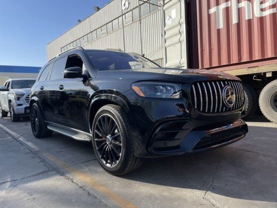 2023款奔驰GLS63AMG 黑色外观黑色内饰 配置:7座 22寸轮毂 AMG翻毛皮方向盘 加热方向盘 抬头显示 AMG高性能发动机 603马力 ➕48V电机最大扭矩 627 ;百公里加速4.1秒;AMG SPEEDSHIFT TCT 9速自动变速箱;AMG垂瀑式进气格栅;AMG高性能四轮驱动增强版,带有完全可变扭矩分配功能;AMG高性能复合制动系统;AMG行驶控制增强版;AMG车速感应式转向;AMG运动排气系统;智能卡 ;柏林之声音响 ;电吸门 ;前排座椅通风带按摩;后排座椅加热,5区空调,脚踏板,几何多光束大灯,DA2驾驶员辅助包 (雷达测距+13项安全驾驶功能),前后电眼,环车影像,底盘升降,电尾门,carplay投屏,电动折叠防眩目后视镜,并道辅助,自动远光灯,12.3英寸双联屏。