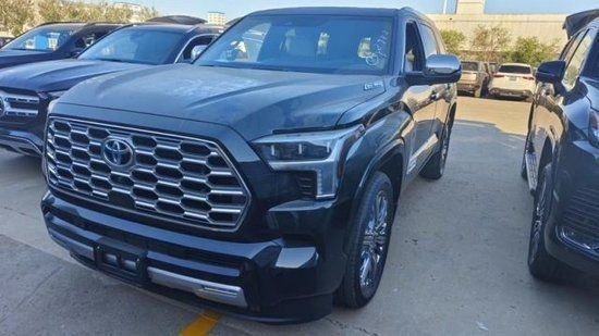 23款丰田红杉3.5T 混动 Capstone顶点版车身侧面来看,新车拥有一个非常庞大的身躯,采用了隐藏式的A、B、C柱设计,营造出悬浮式车顶的样式,外后视镜壳还有银色与黑色可选,提升了该车的时尚感。购车热线:18812637416刘经理 (同号微信)另外,新车腰线贯穿整个侧面,并在前后翼子板处采用内凹式设计,营造出了极其宽厚的视觉效果,再搭配六螺栓孔固定的20英寸密条辐轮圈,整体搭配展现出了陆上霸主的气息。