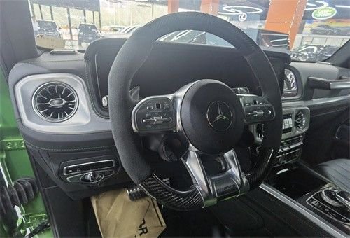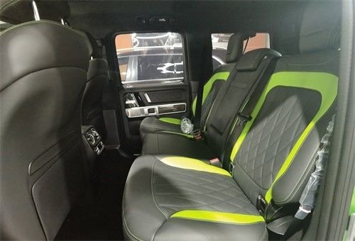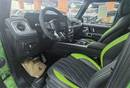 首先它是一台加版大满配的G63,全球限量的配色使得它在一众G63中格外的张扬和高调。整车在采用全球限量的G Manufaktur哑光魔艳绿外观的同时,设计师也为它量身打造了与车身同色的绿黑双拼色内饰。