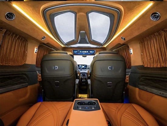 商务舱的功能性和配饰舒适性也保持了以往的特色。中央扶手冰箱,有冷冻的功能。24寸二排多媒体音影大屏幕,可链接无线网络,正常的看电视听音乐,影院级别的VVCAR7.1音响系统也保持了视听的绝佳效果。车内多处手机无线充电,以及车载220V电源,空调也有独立的分区,更加的保证了后排的娱乐休息享受。