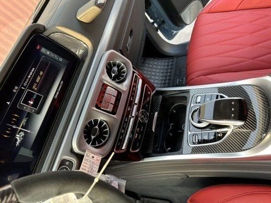 23款奔驰G63档次、质感和科技配置都明显提升奔驰G级 (配置|询价)(配置|询价)的内饰相比老款有了明显的提升,采用了奔驰最新的双屏幕式设计,全液晶仪表盘和中控台屏幕都达到12.3英寸,同时内饰质感和工艺都有了很大的进步。中控涡扇式空调出风口也颇具设计感,车内的高档皮革内饰以及标有V12钻石图案设计的座椅、车门面板和脚垫,无不彰显着车主的尊贵身份。