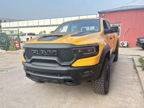 23款道奇公羊霸王龙外观更有冲击力,道奇的设计团队为新车增加了很多高性能元素。比如全车的镀铬件都经过了黑化处理,发动机盖两侧安装了装饰性的黑色进气口,中央部分也为了容纳巨大的机械增压器而做了一个凸起的结构,并且还在机盖上设置了三盏灯。同时,带着铆钉的黑色轮眉和运动化前保险杠上外露的拖车钩,均让Ram1500TRX浑身上下散发出的攻击性更浓烈了一些。
