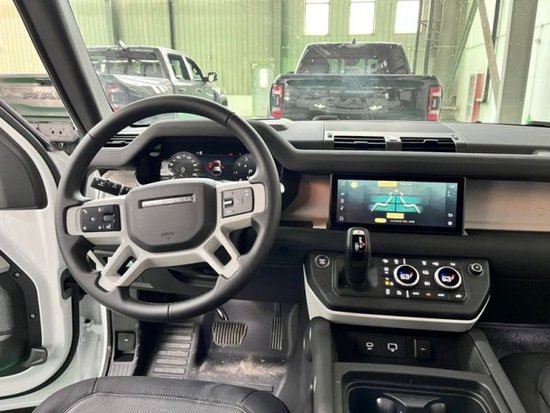 全新23款路虎卫士中控台使用了涂层镁合金材质,进一步提升了内饰的耐用性,新车使用了全新的四辐式方向盘、12.3英寸全液晶仪表、10英寸中控屏幕,空调旋钮带有液晶显示屏,电子挡把位于中控屏下方,使用更加顺手。新路虎卫士的全地形能力在于一套核心技术组合拳击。