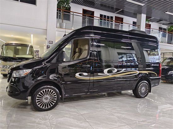 新款奔驰斯宾特车身尺寸长宽高:5.93*2.02*2.83米,汽油版,排量2.0T带涡轮增压,功率188HP(已测试,动力完全够用),油箱84L,变速箱9速自动变速箱。新款的斯宾特2500增加了无钥匙启动功能,驾驶室视野宽广,多功能方向盘真皮与桃木双拼,操控性好。