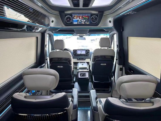 二排座椅是两个独立的航空座椅,舒适度自不必说,三排座椅是宽大舒适的三联排沙发床,车载冰箱、车载窗帘、空气净化器、咖啡机等均可配备。对于奔驰斯宾特你怎么看呢?