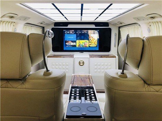 奔驰V260L改装隐藏六座电子影音设备:● 双电池供电系统● 强启功能● GPS全球卫星导航系统带倒车影像● 乘客舱空调独立控制 冷暖气分离出风口● 一键式超静音32寸高清液晶升降电视● 日本建武5.1影院级音响系统● 220V电源接口,USB.VGA 多功能连接口● 智能语音控制系统● 无线网络终端系统● 后舱车载触控屏娱乐电器中控系统● 车内电器无线控制系统● 指纹识别便携式保险柜● 车载空气净化器● 全车IOS远程控制系统