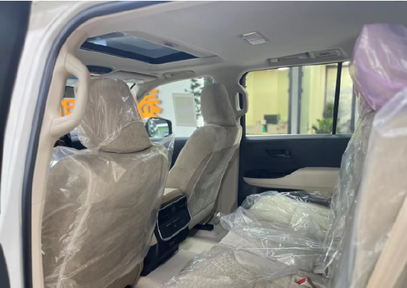 将目光转向后排,也在宽大的尺寸编排(长4950mm、宽1945mm、高1980mm,轴距2850mm)下,拥有了类似“大沙发”的布局。并且,前排座椅椅背挂着的大尺寸多媒体屏,加之分区空调调节区间,也让它多了几分豪华感。
