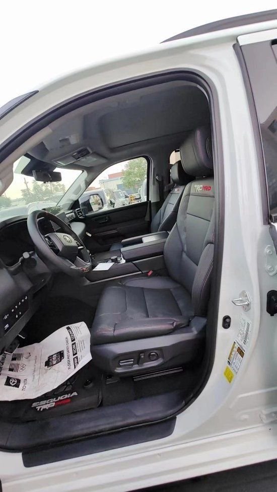 23款丰田红杉的内饰的实用性与空间利用率在这代红杉身上均得到提升,坐进车内,第一感受就是大,前排的两个大尺寸的真皮座椅,自带打孔透气皮料,四幅式多功能方向盘,握在手里的质感不错,转向也没有想象那么重,T型的中控平台,尺寸方面也比一般车型大不少,14英寸的中控触摸屏,集成了几乎所有的影音娱乐以及车身控制功能。