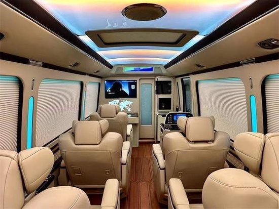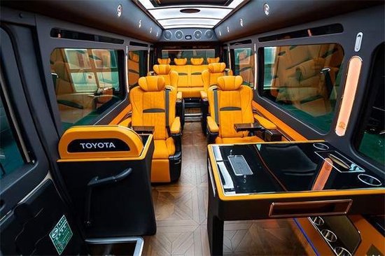 丰田考斯特作为一款顶级商务旅行房车,内饰的豪华改装绝对是主打卖点,仅仅从外面透过一点点缝隙看车厢的内部都能感觉到里面的奢华感,车顶有七色炫彩的空客顶灯,绿色灯光的宁静,或者是粉色灯光的温馨,各种颜色可使用遥控器随心调节,以及窗帘内部的七彩调节LED灯(通过触摸屏自由调节开启)舒缓眼睛疲劳,给您心灵上的抚慰,七彩窗帘立柱灯提升整体品味又或是全车的游艇木柚木地板(防潮防滑耐脏),侧壁上的阅读灯营造温馨舒适环境,处处都在体现改装后的高品质、高咖位。