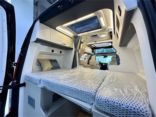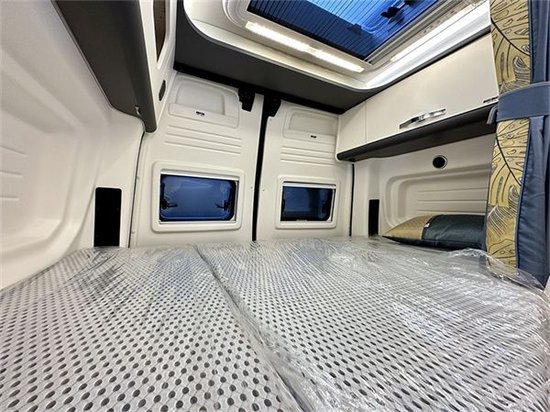 打开尾门后可以看到,整车依旧采用对称式布局风格,这也是采用了瑞弗房车独有的平衡设计,能够让车辆在行驶时保持车身稳定,提供车辆的安全性。整车的内部空间显得更加通透,尾部采用横置床铺的设计,当车辆停靠在海边或湖边,可以坐在这里欣赏美景,简直太惬意了。