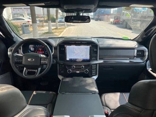 23款福特F150内饰采用独特的中控台和门饰板面漆和真皮包裹的方向盘。中控台部分辅以银色饰板装饰,六指针仪表盘的设计有些后工业时代的复古风格。采用带电冷热功能的可记忆式皮革座椅,头枕四向可调,搭配铝饰条和黑色钢琴烤漆内饰可电动升降的后窗带隔板和电热除霜功能。宽敞的空间可以让成员舒服的伸开双腿、展开双臂。