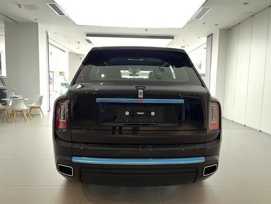 劳斯莱斯库里南尾部设计十分简洁并没有采用过于华丽的装饰,矩形尾灯组颇具新意,内部还加入了直立的细灯条点亮后视觉效果极佳。该车还装载了金属排气管和防撞击滑板,进一步彰显其动力与性能。