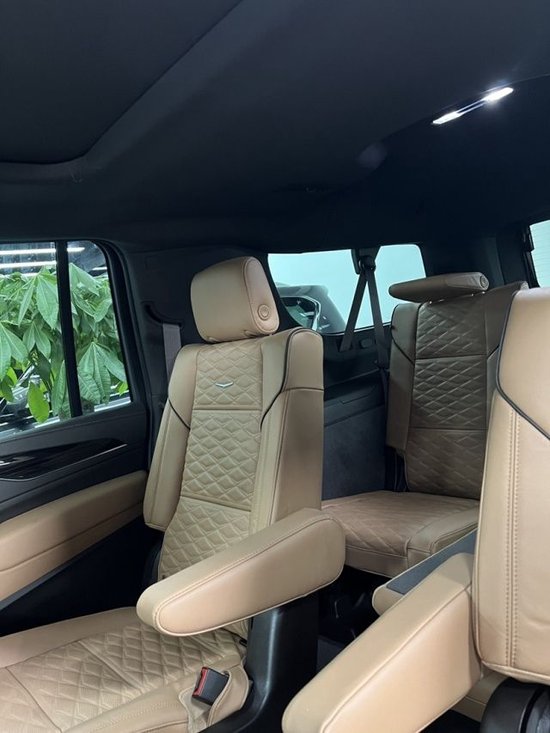配置选配:玛瑙包(亮黑凯雷德尾标,带凯迪拉克标识的地射灯,单色凯迪拉克前后车标,22寸12幅亮黑色轮毂),发动机杠体加热器。 铂金包(前按摩座椅,电吸门,窗台板照明,自适应空气悬挂,12向电动前排座椅,前排乘客座椅四向腰托,后排娱乐,铂金内饰,真皮方向盘,AKG Studio Reference 36扬声器音响系统,带LED照明的电动踏板,带凯迪拉克标识的地射灯。)