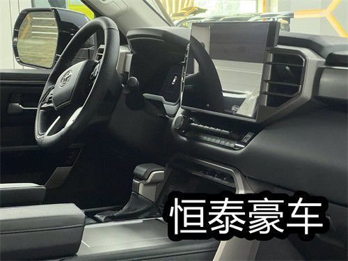 23款丰田红杉的内饰的实用性与空间利用率在这代红杉身上均得到提升,坐进车内,第一感受就是大,前排的两个大尺寸的真皮座椅,自带打孔透气皮料,四幅式多功能方向盘,握在手里的质感不错,转向也没有想象那么重,T型的中控平台,尺寸方面也比一般车型大不少,14英寸的中控触摸屏,集成了几乎所有的影音娱乐以及车身控制功能。
