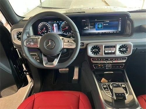 23奔驰G500的内饰是奢华与硬派的结合卓越的品格和典雅的工艺在车内表现得淋漓尽致,对细节的千锤百炼是内饰计划中的首要原则。内饰变化巨大,全新的12.3寸液晶仪表、扶手箱、方向盘,都是奔驰最经典的设计理念。两块屏幕组成中控主体。