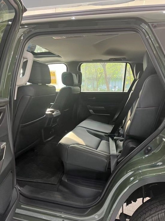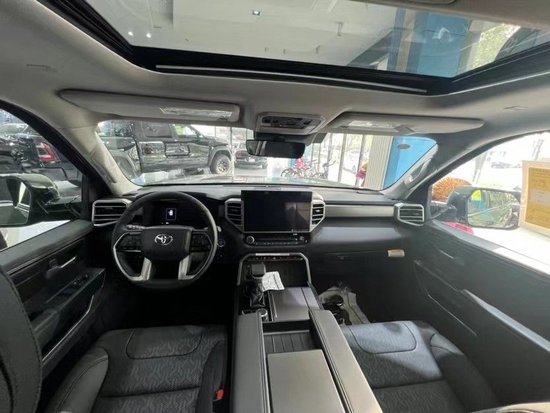 8座;选装:超音速红(加钱);SR5高级包(中控14寸触屏;仿皮座椅;三排电动座椅;感应尾门;400W/120V后备箱交流电源);方向盘加热;脚垫;黑色徽章;急救包;TRD铸铝踏板;轮毂锁
