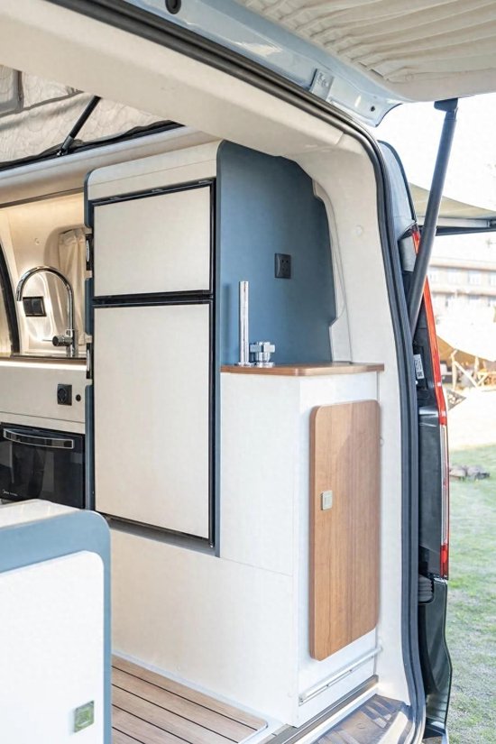 而且在这里必须要夸赞一下这款房车储物空间非常丰富,常规空间 350L,最大可以扩展至 850L,女孩子们真的是爱了爱了,衣服化妆品包包又可以多带一些