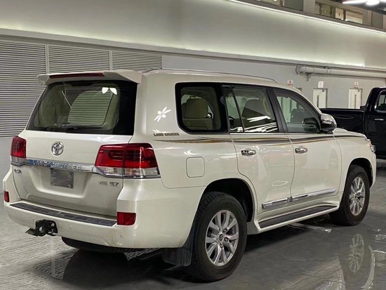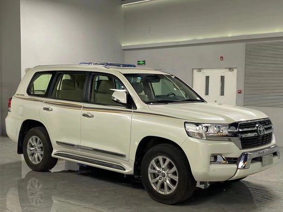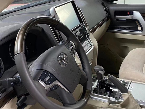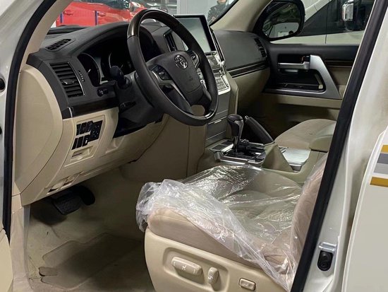 中东兰德酷路泽5700GXR版本配置:8气囊,前小杠,LED雾灯,氙气大灯,镀铬格栅,车身防擦条,彩条,行李架,航空踏板,尾翼,高位刹车灯,拖车钩,前后雷达,天窗,丝绒座椅,18寸铝合金轮毂,智能卡,一键启动,冰箱,倒影,遥控启动,中控大屏幕,电动座椅,桃木多功能方向盘,二档起步,儒行模式,坦克掉头,车身稳定系统,差速锁,后排空调出风口,坡道辅助等。