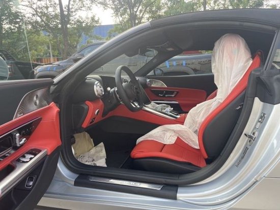 23款梅赛德斯奔驰SL43 AMG 敞蓬 欧规 颜色:高科技银/辣椒红 车辆配置: 豪华PLUS包:( 抬显,柏林音响,多轮廓座椅,前排通风、加热、按摩,方向盘加热,360环影,魔术视觉控制,MBUX增强现实导航,MBUX内部助理,氛围照明,USB封装PLUS包,AMG标志照明门槛,AMG 实时高性能声浪,行车记录仪)驾驶辅助包 ,停车辅助包,记忆包,V8风格外观包套件,21寸AMG Y型轻合金轮毂+银卡钳,主动车道保持辅助,AMG RIDE CONTROL悬架,熏黑大灯和尾灯,阻尼+AMG电子后差速锁,运动座椅,无钥匙启动,AMG镀络外观,AMG底盘调教