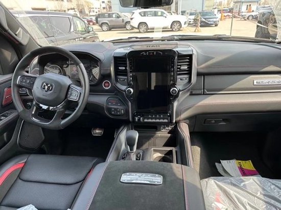 23款全新道奇霸王龙TRX在内饰部分进一步强化了其高性能版本的形象,中控台和座椅随处可见的TRX标识便是最好的例证。同时,作为道奇家族的旗舰车型,新车还配备了12英寸竖置中控屏幕,除了支持蓝牙、导航和车载Wi-Fi等常见功能,还支持Apple CarPlay和Android Auto手机映射